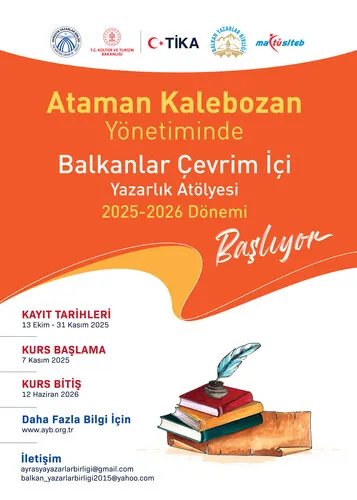 ATAMAN KALEBOZAN yönetiminde 33 hafta sürecek Balkanlar Yazarlık Atölyesi çalışmaları 7 Kasım 2025 Cuma günü başlıyor.