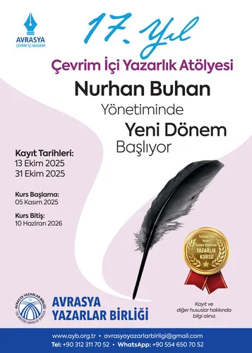 Avrasya Yazarlar Birliği olarak 17.Yıl çalışmalarına 05 Kasım 2025 tarihinde yapacağımız açılış dersimizle başlıyoruz.